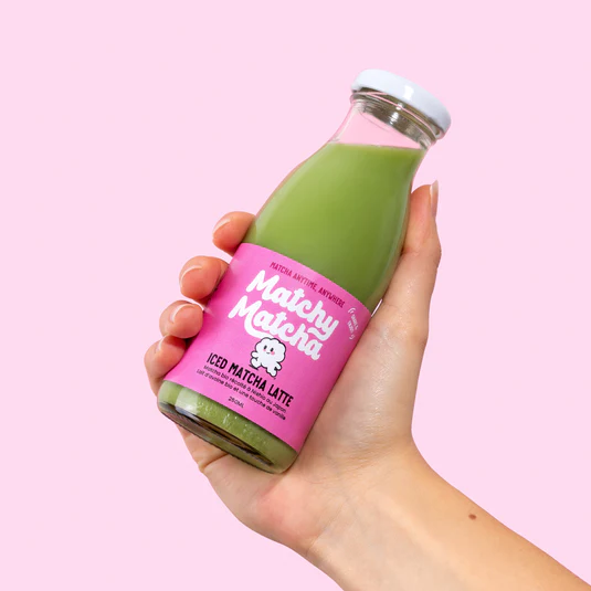 À ce jour, Matchy Matcha concentre son offre sur un produit phare : l'Iced Matcha Latte au lait d'avoine bio. Cette stratégie mono-produit permet à la marque de perfectionner sa recette et de garantir une qualité constante. Le format de 250 ml en bouteille en verre répond aux besoins de nomadisme et de praticité recherchés par sa cible.