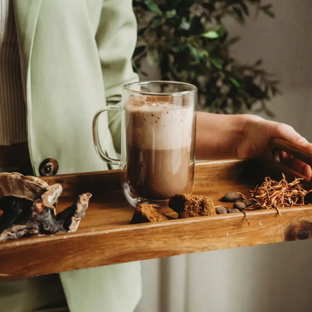 Not Coffee est une boisson à base de cacao enrichie en cinq champignons adaptogènes, conçue comme substitut fonctionnel au café traditionnel.