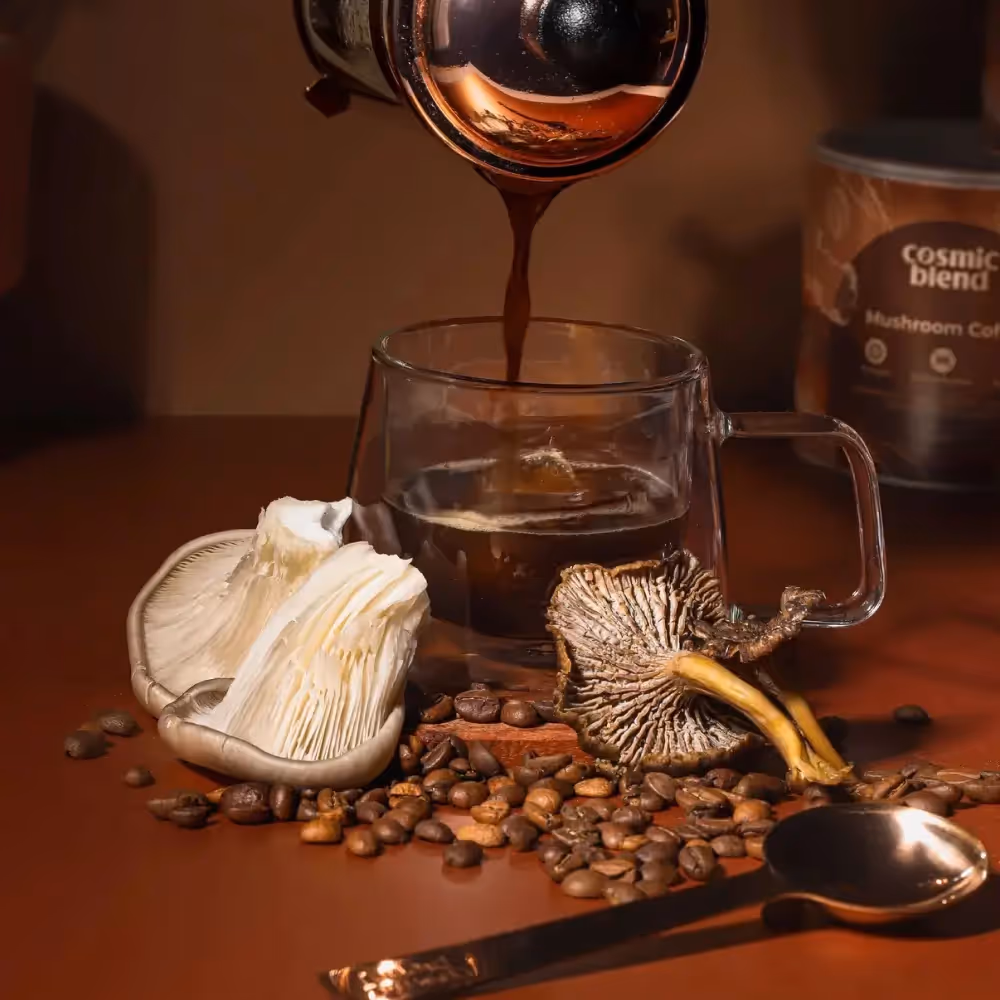 Cosmic Blend se distingue par deux gammes principales : le Mushroom Coffee et les Cosmic Drops.