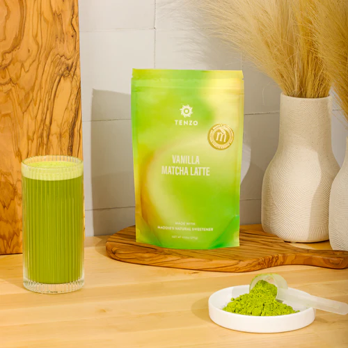 Tenzo lance régulièrement des mélanges aromatisés en édition limitée, comme le Vanilla Matcha Latte et le Pumpkin Spice Matcha Latte, intégrant des arômes naturels bio, du nectar de coco bio, de l'extrait de fruit de moine et de la stévia bio.