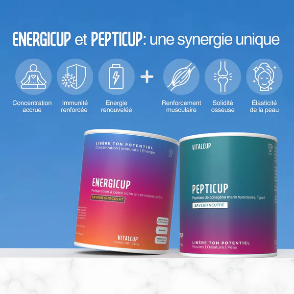 PEPTICUP est un complément alimentaire beauté à base de collagène marin en poudre, destiné à soutenir la peau, les os, les tendons et les cheveux.